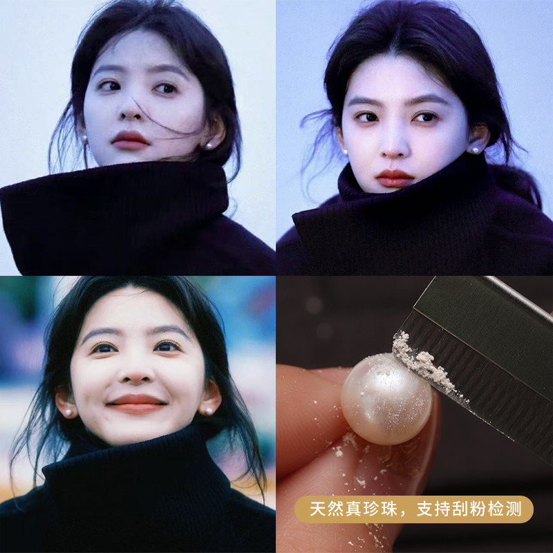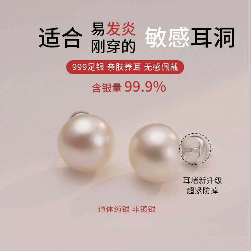 fever同款珍珠耳钉999纯银施家耳环2025新款爆款高级轻奢正圆耳饰