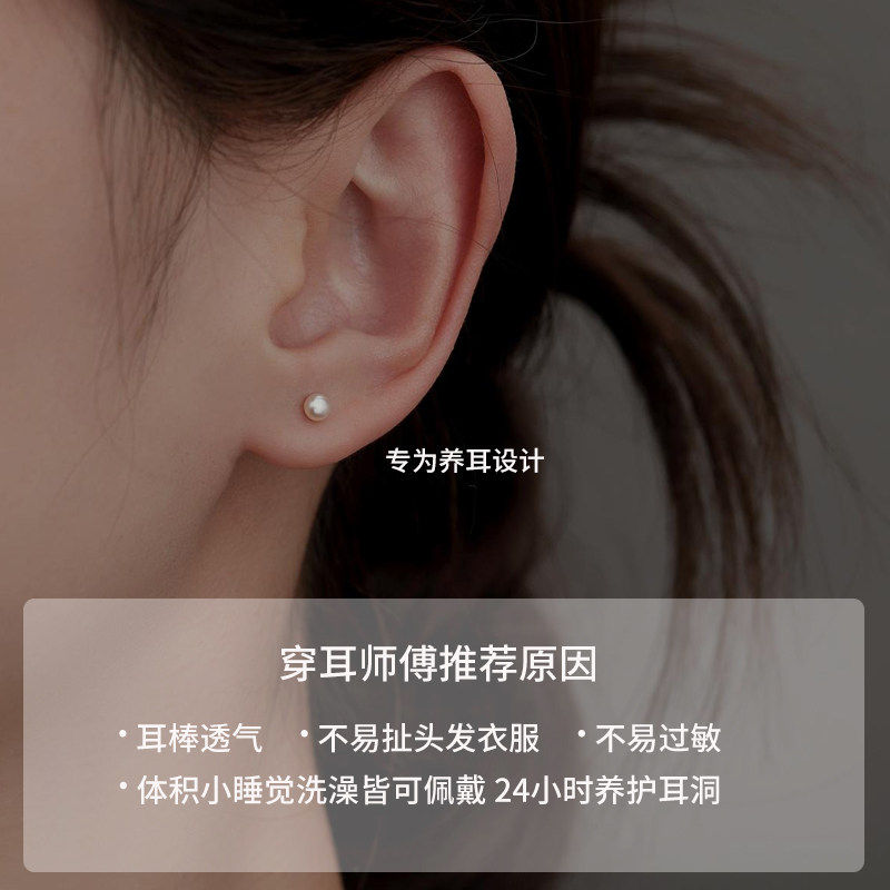 S999纯银淡水珍珠耳钉精致高级感耳骨钉女2026爆款养耳洞耳环耳饰
