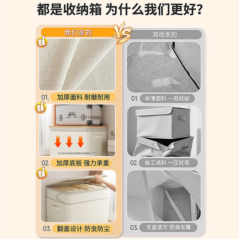 布艺收纳箱家用衣服衣物整理盒大容量超大折叠加厚衣柜储物箱神器