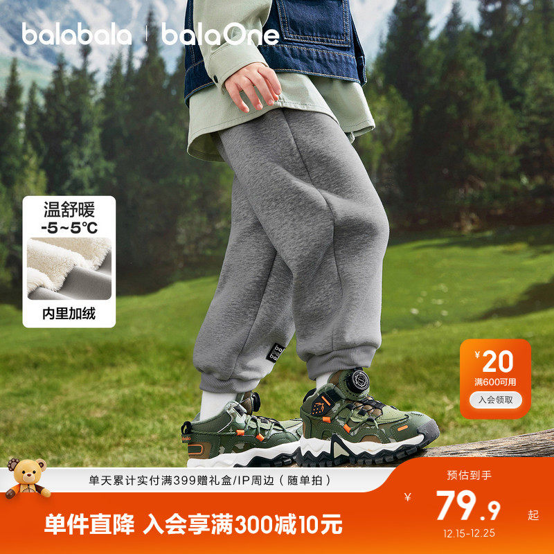 巴拉巴拉童装儿童加绒裤子男童女童2025冬装新款一体绒运动长裤潮