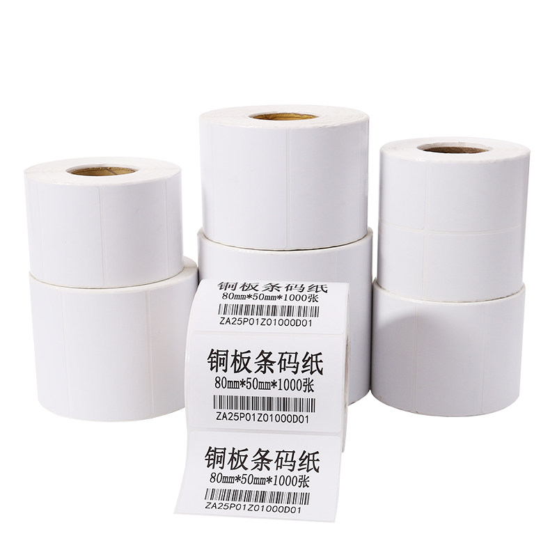 铜版纸不干胶标签打印纸120 30 32 19 40 50 60 70 80 90 100 150碳带色带卷条码铜板标签纸空白印刷打印贴纸