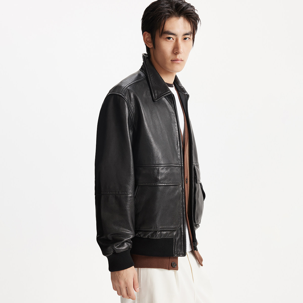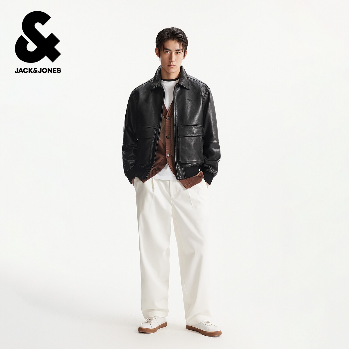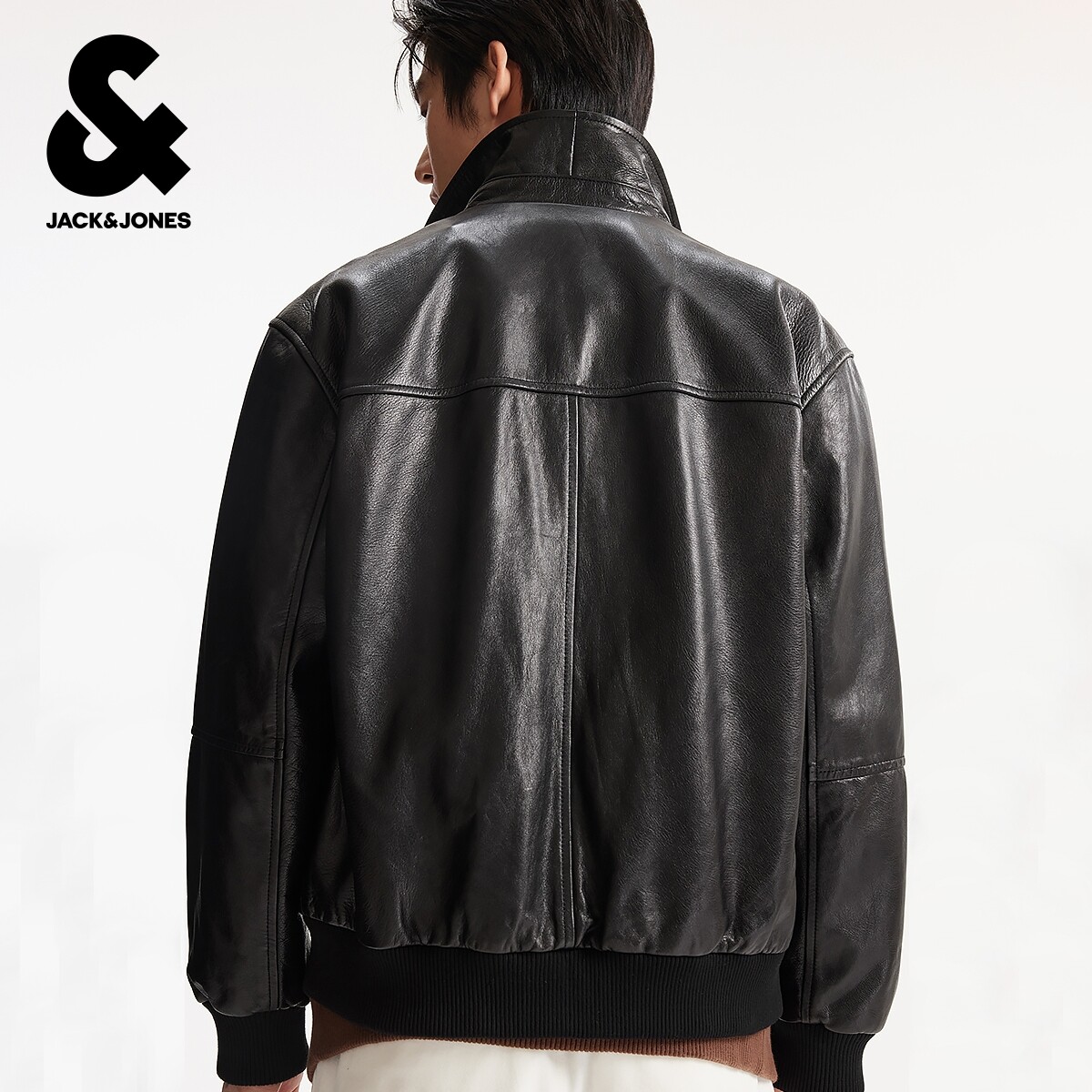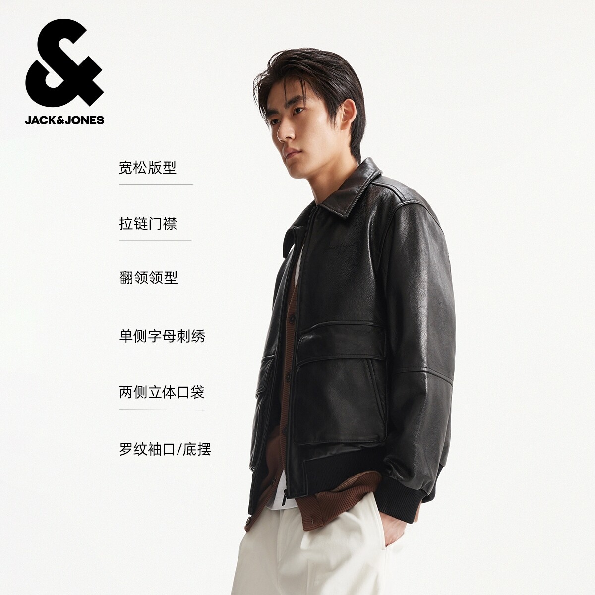 杰克琼斯男装春秋新款时尚出街轻机车风黑色休闲宽松翻领夹克外套