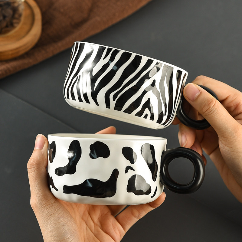 动物纹高颜值矮款甜品杯咖啡杯设计感小众陶瓷杯精致牛奶杯办公室