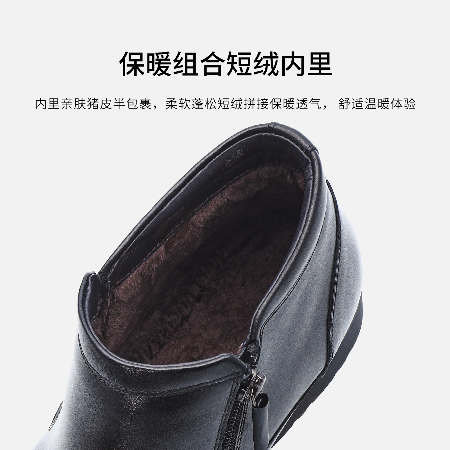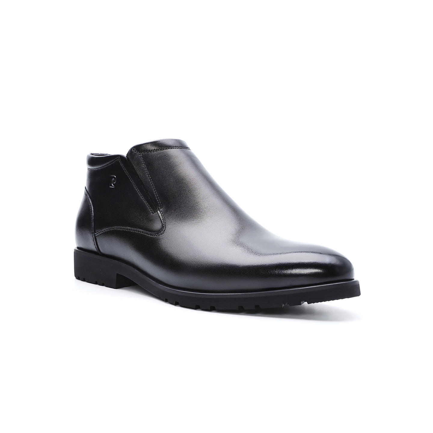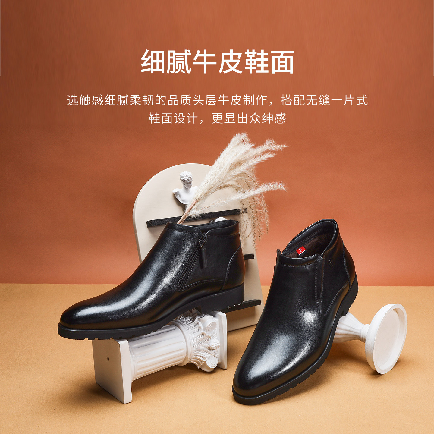皮尔卡丹男士真皮侧拉链保暖加绒短靴商务正装头层牛皮皮鞋靴子男