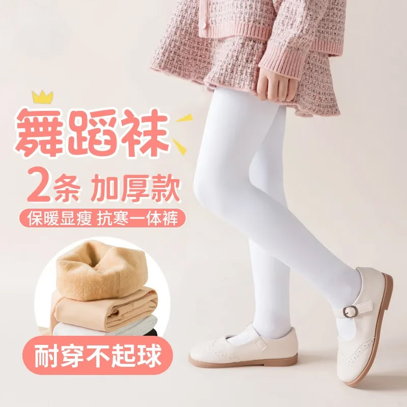 女童光腿神器春秋加绒保暖肉色丝袜打底裤肤色儿童连裤袜薄绒白色