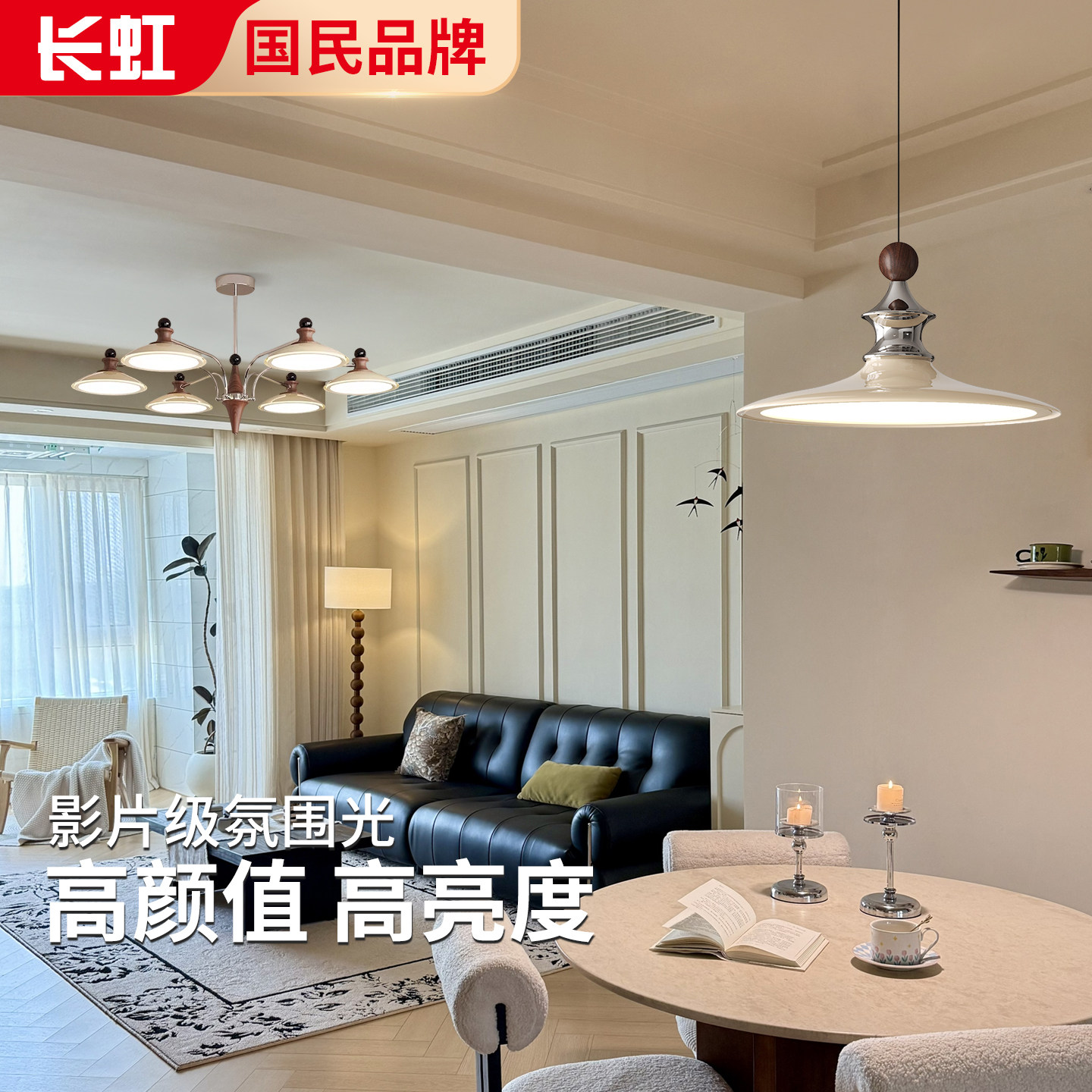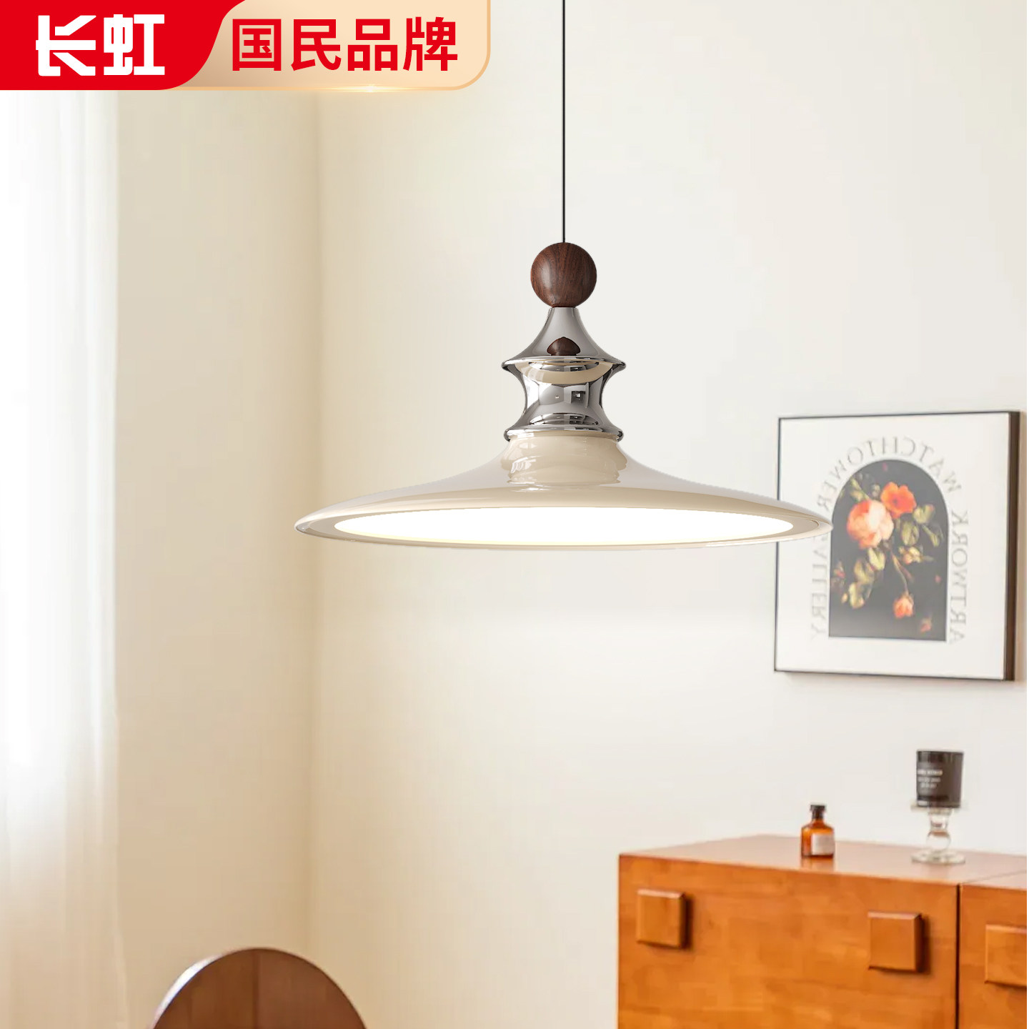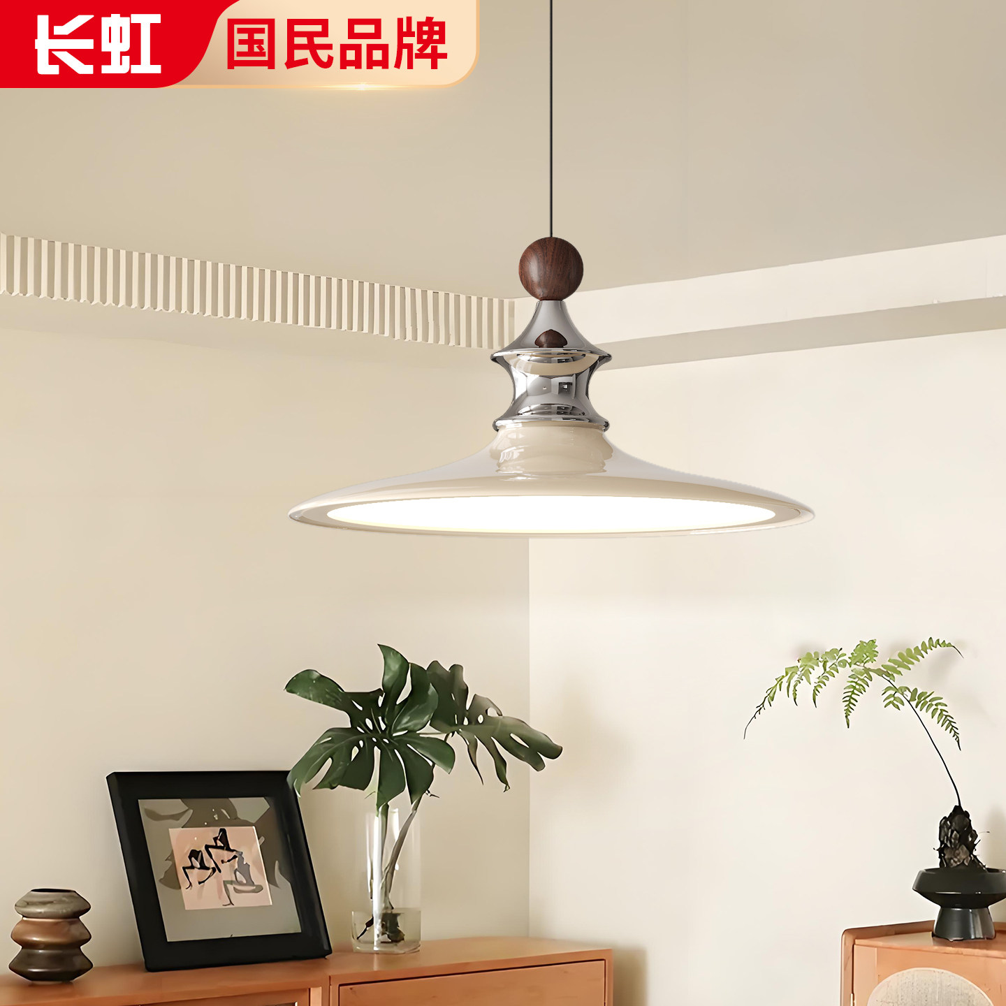 长虹中古奶油风餐厅吊灯2025新款法式复古餐桌灯棋士圆桌飞碟灯具