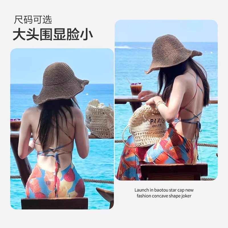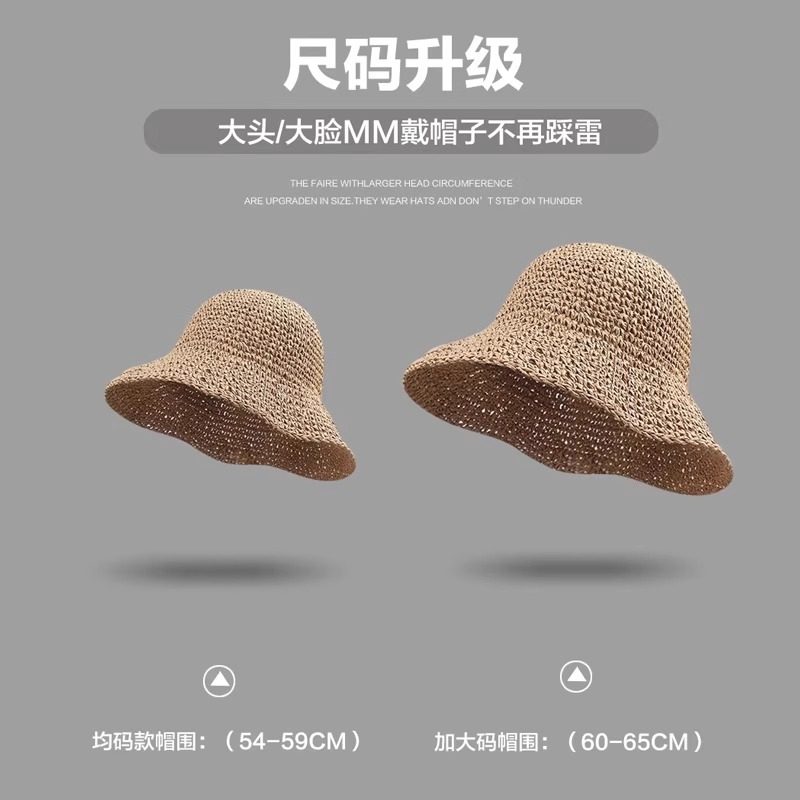 大头围草帽可折叠帽子海边大帽檐沙滩帽遮阳帽渔夫帽度假旅行秋季