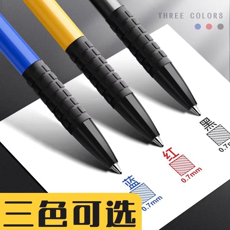 新款圆珠笔黑色按压式按动油性笔商务办公原子笔小学生专用蓝红自动0.7老式子弹头笔芯办公室速干老师批改