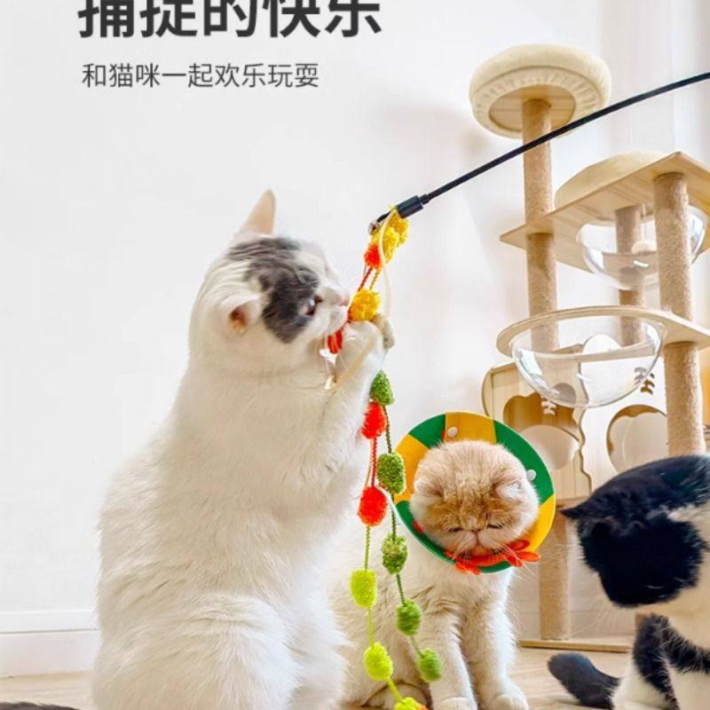 节节高逗猫棒仙女棒流苏毛线球自嗨解闷神器铃铛耐咬长杆猫咪玩具