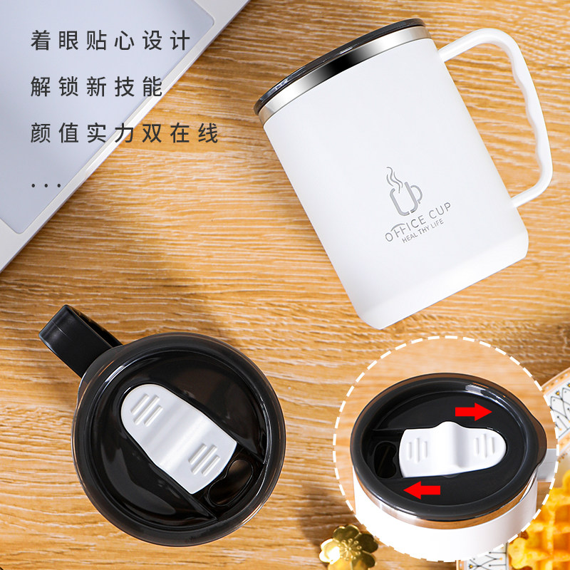 不锈钢马克杯大容量办公室杯子保温咖啡杯男生款泡茶杯喝水杯带盖