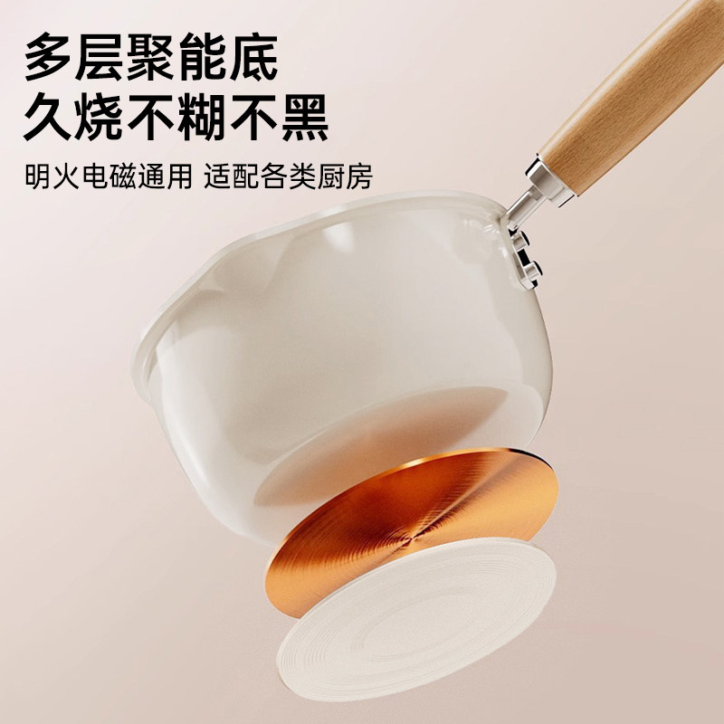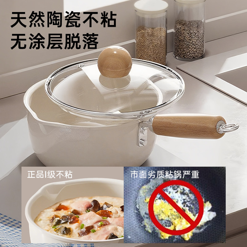 陶瓷小奶锅宝宝辅食锅婴儿专用小锅一人食泡面不粘锅蒸煮一体汤锅