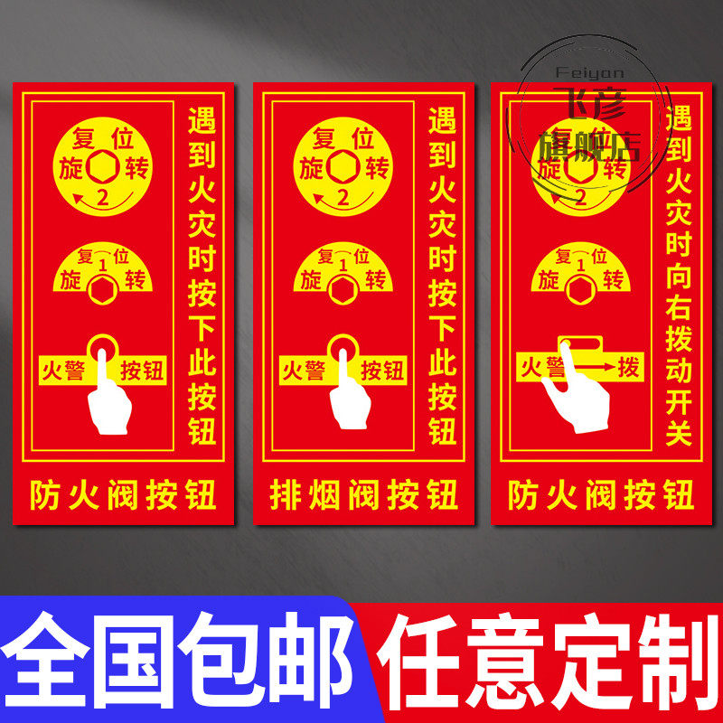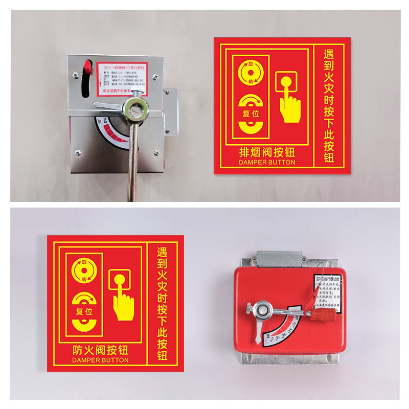 排烟阀按钮提示牌 防火阀按钮标识牌 遇到火灾时按下此按钮消防安全温馨提示墙贴纸防火排烟风机送风阀门标志