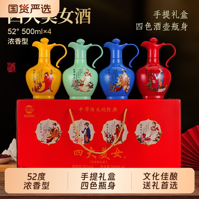 SUGOU苏沟四大美女白酒浓香酒壶礼盒送礼老丈人整箱500ml节日收藏