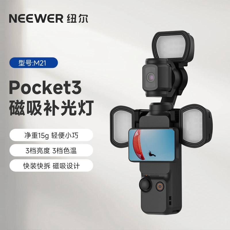 NEEWER纽尔适用DJI大疆Pocket3补光灯磁吸补光运动相机配件云台相机口袋便携式快拆小灯Vlog拍摄神器打光灯