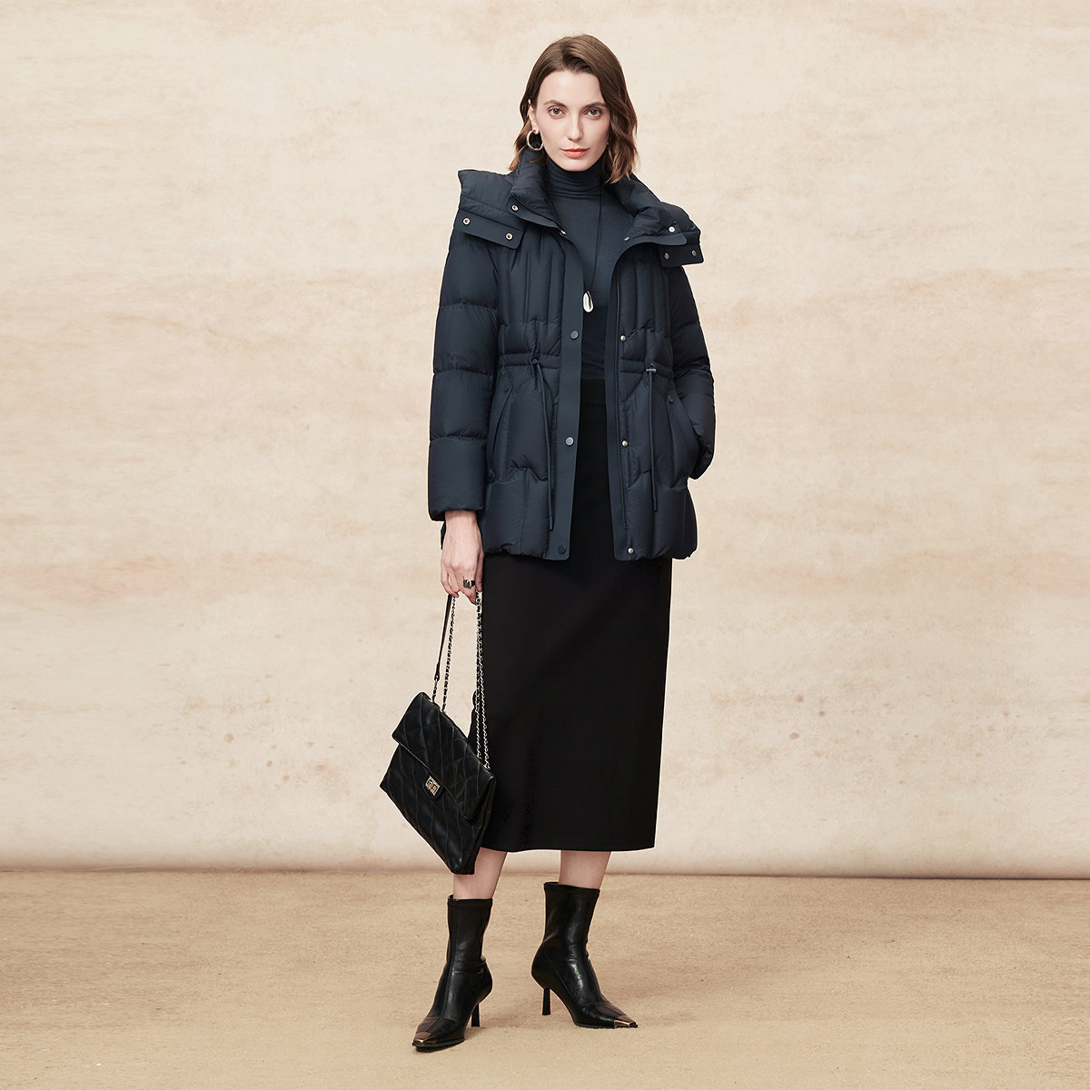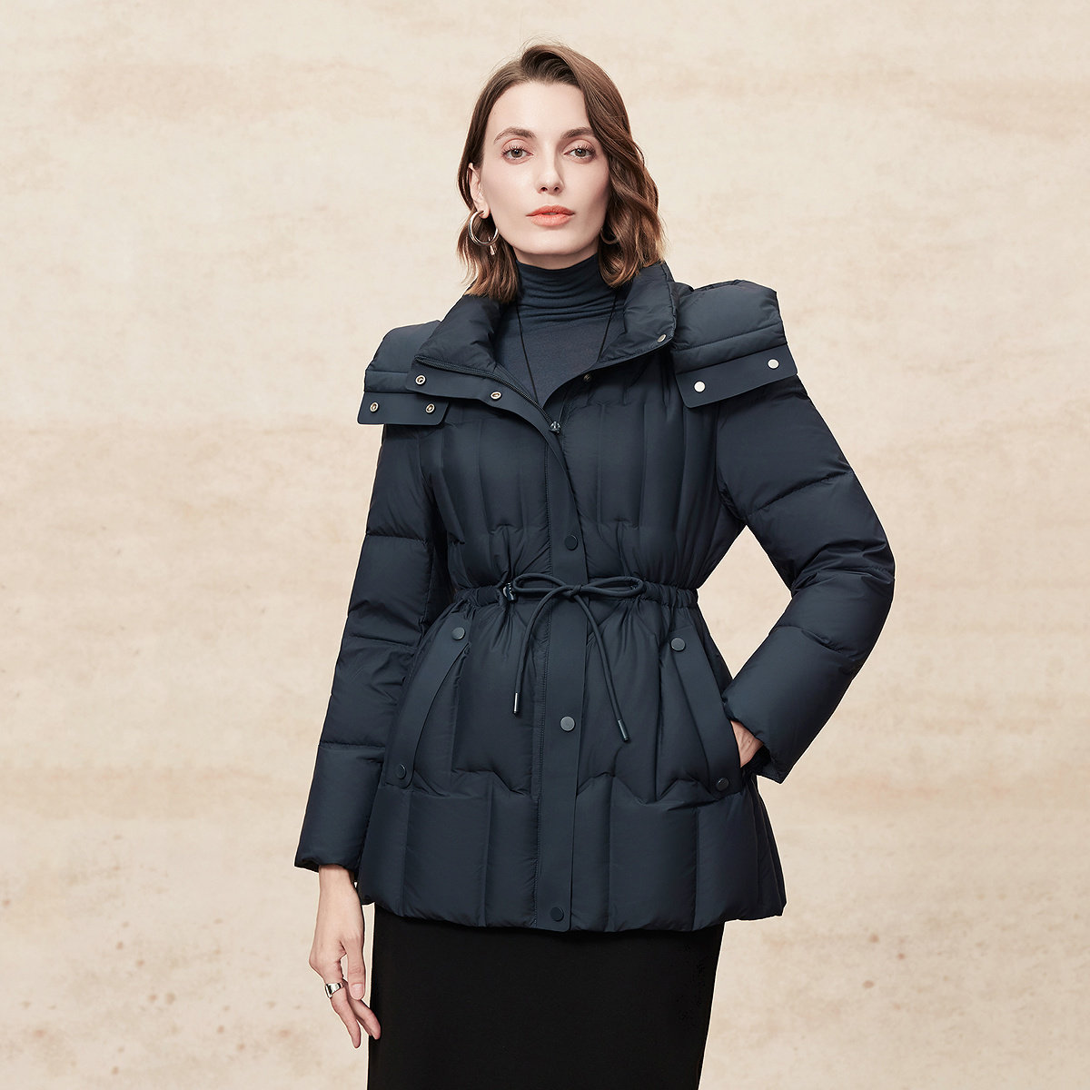 FINITY菲妮迪90绒羽绒服2025冬季新款简约气质连帽长款保暖外套女