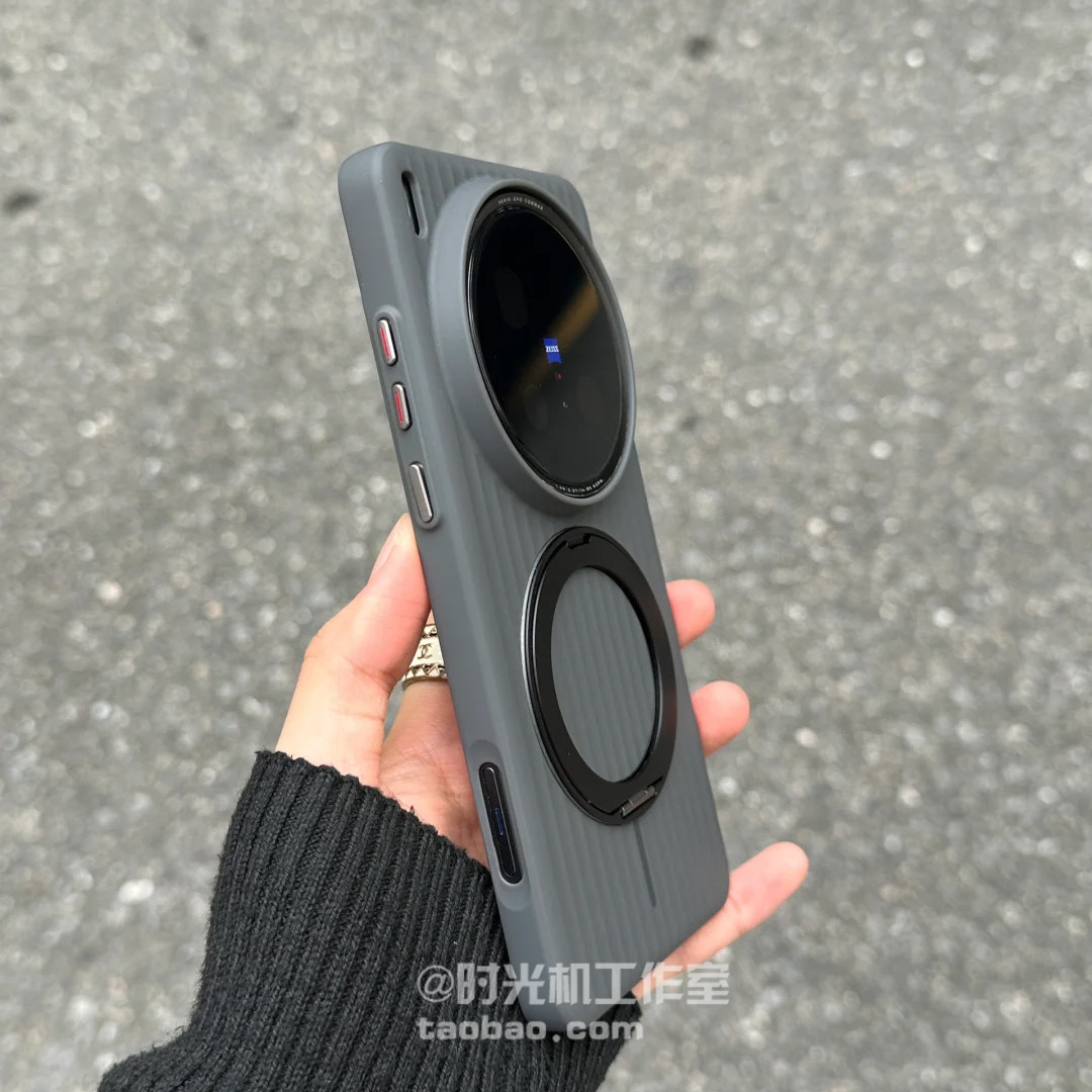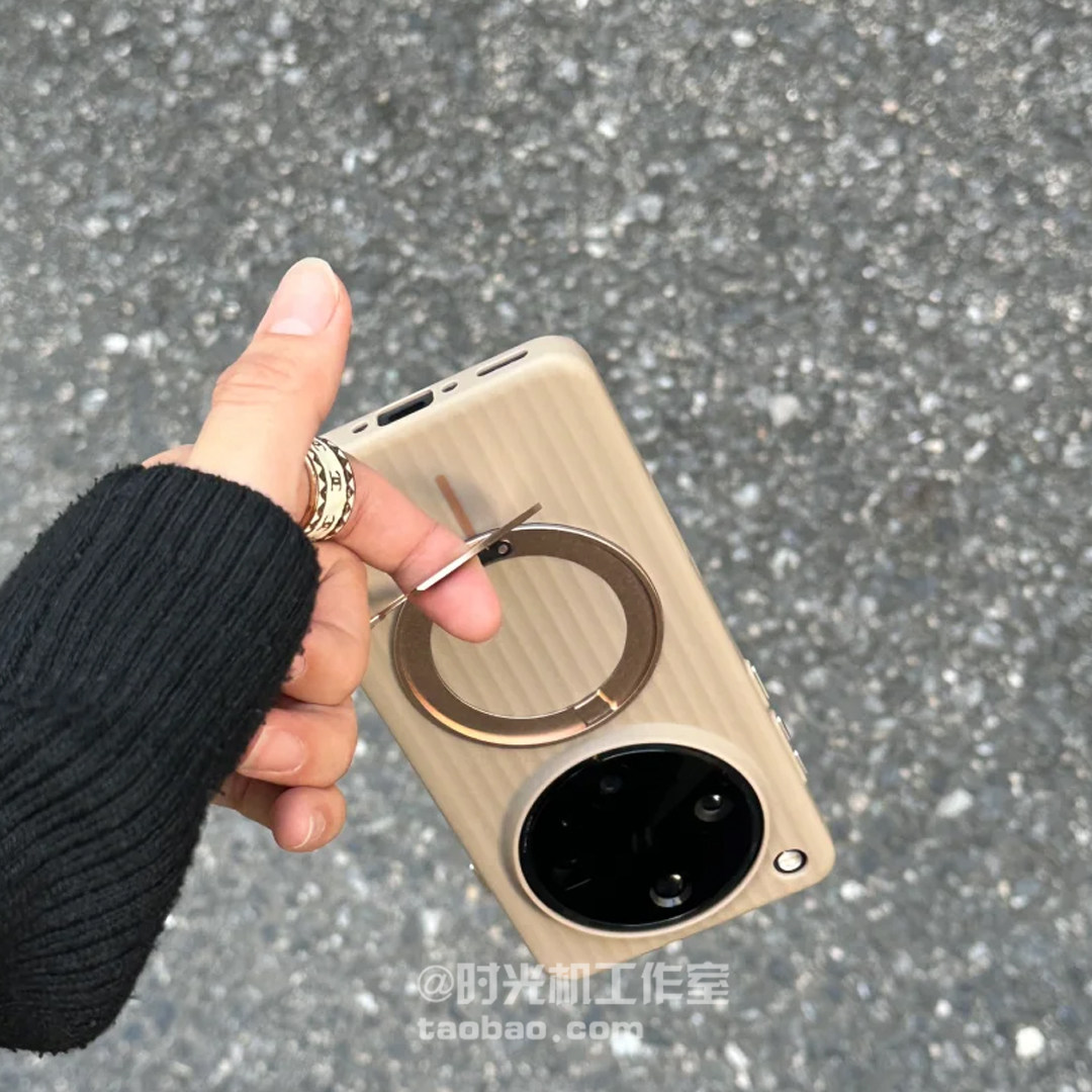 行李箱竖条纹360°磁吸支架壳适用小米15Ultra手机壳15pro肤感纯色PC瓦楞壳m14不粘指纹耐脏小众男女保护套硬