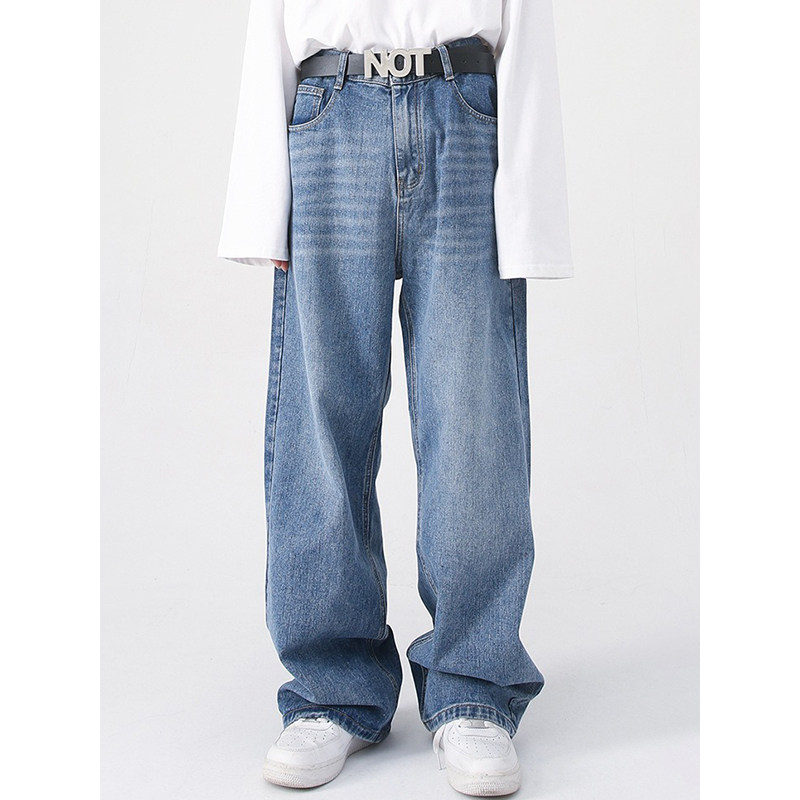 阔腿牛仔裤男士2025春秋新款美式复古宽松大码冬季休闲直筒裤子男