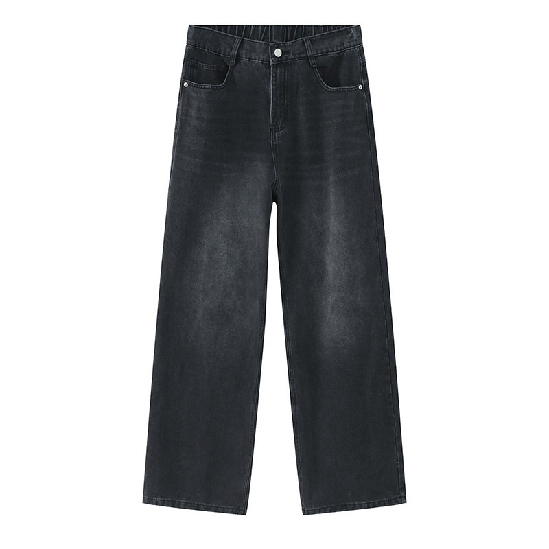 复古牛仔裤男宽松直筒松紧腰2025年春秋季新款潮牌阔腿男生长裤子