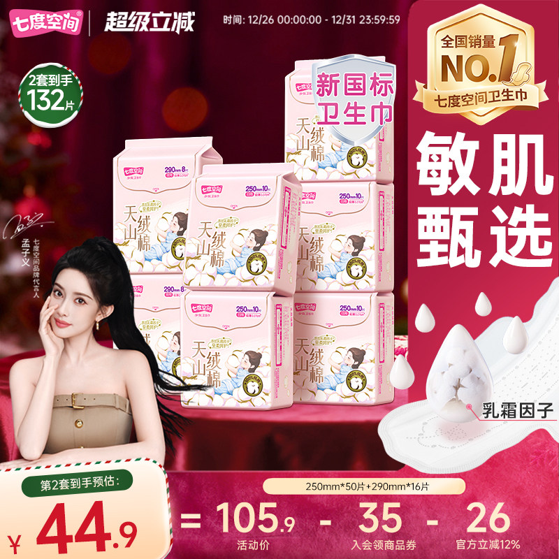 【新国标认证】七度空间天山绒棉敏感肌卫生巾日夜用极薄纯棉