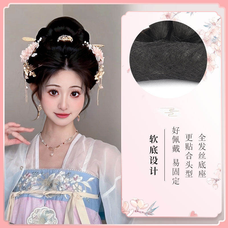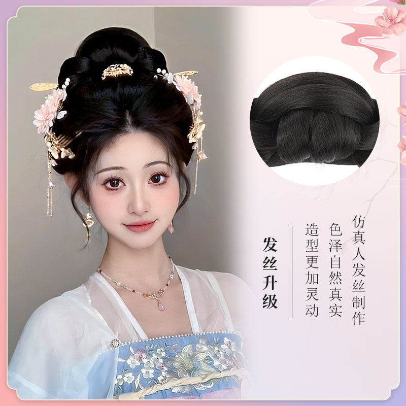 汉服假发古风盘发发髻一体式全发丝发包全套古装唐风发型垫发包女