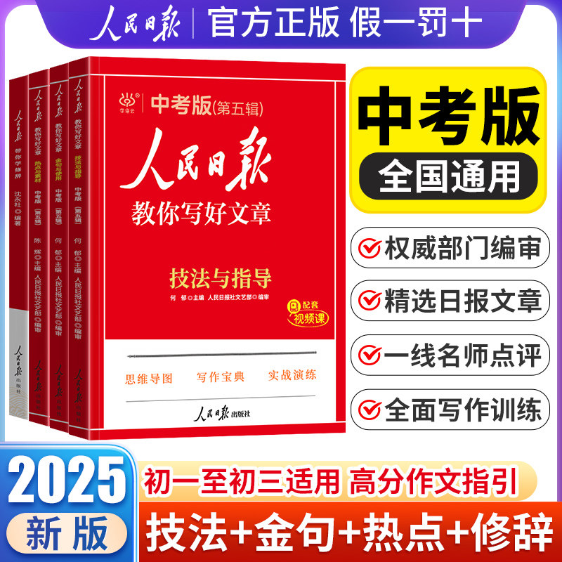 2025版中考版高考版热点与素材技法与指导高中七八九年级中考满分作文模板书读时政金句摘抄与使用初中写作精选文学修辞新版训练