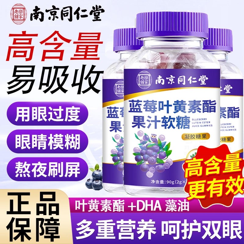 南京同仁堂dha蓝莓叶黄素果汁软糖正品儿童成人护眼明目保护视力