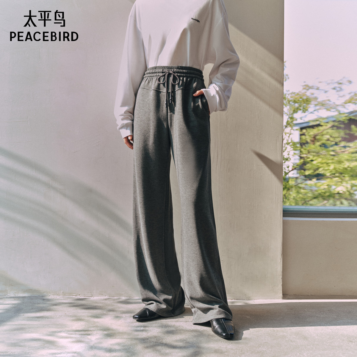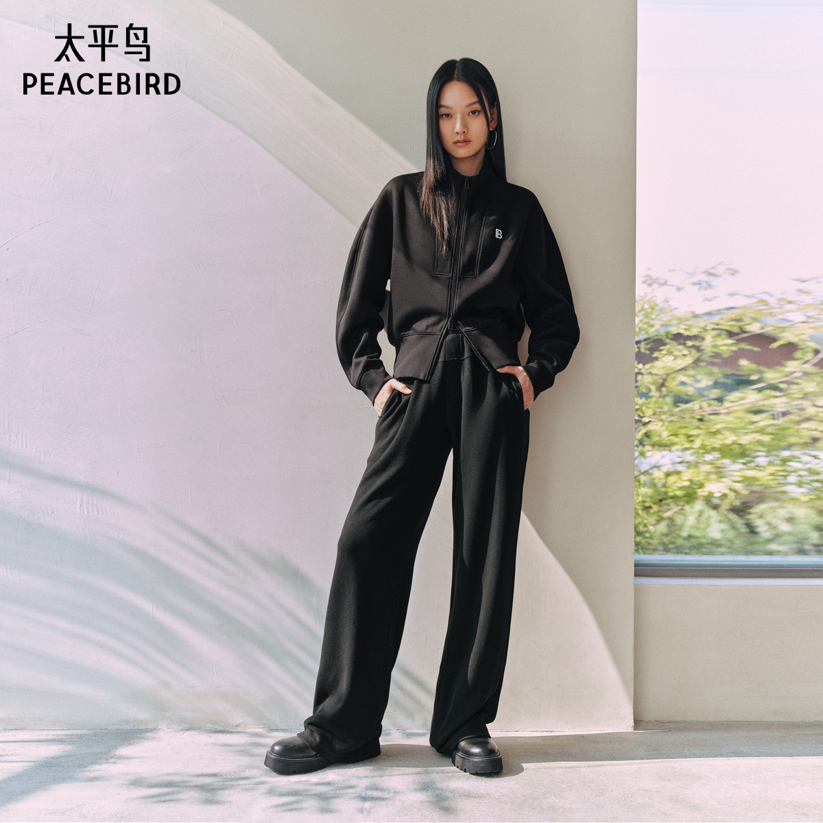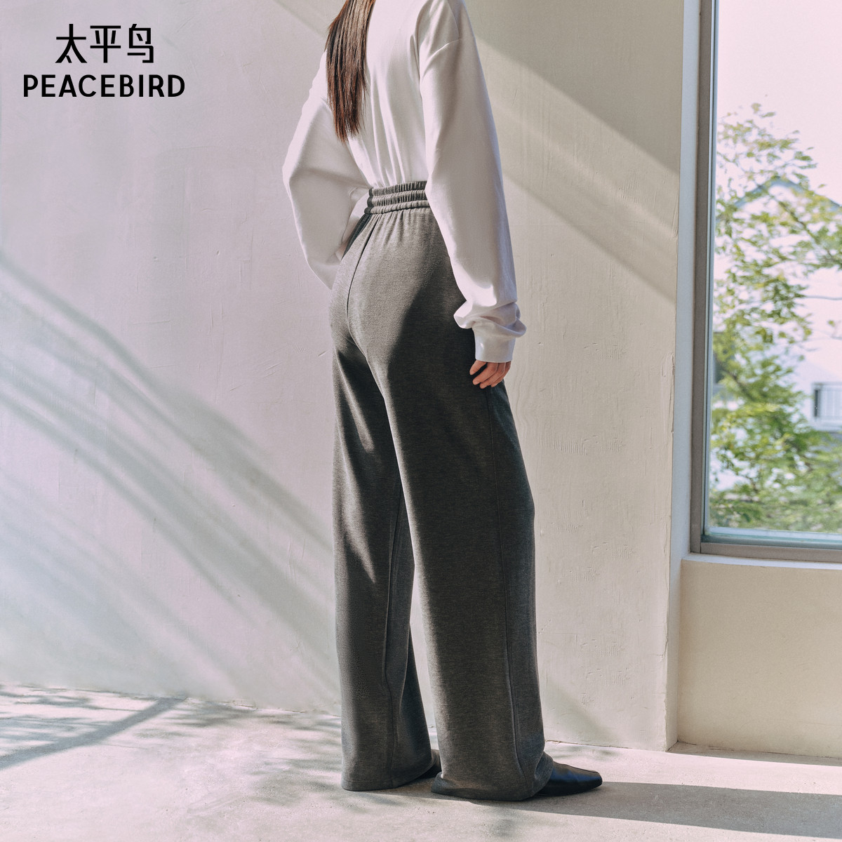 太平鸟高腰休闲针织长裤年冬季新款黑色加厚宽松直筒阔腿裤女