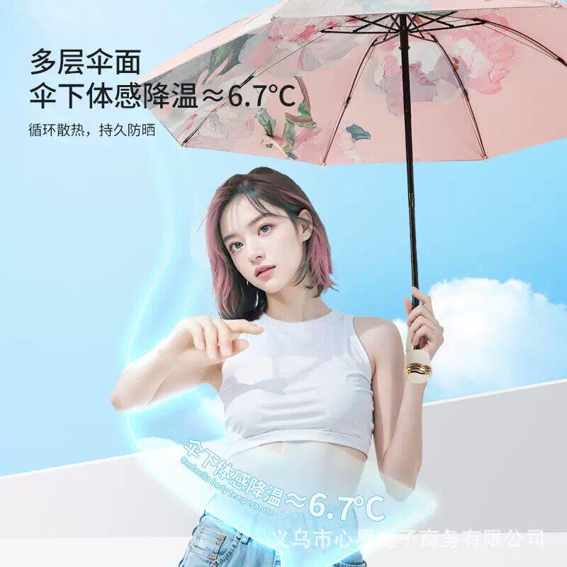 2025新品超轻小巧太阳伞晴雨两用女防晒伞防紫外线便携黑胶遮阳伞