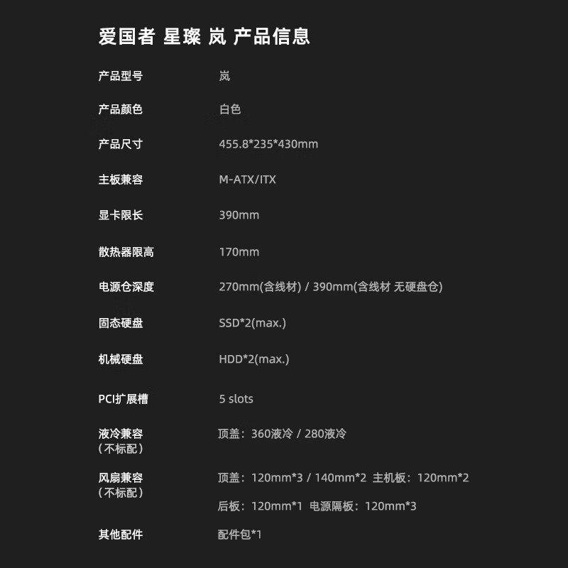爱国者星璨岚星璨小岚海景房侧透无立柱MATX水冷台式电脑机箱