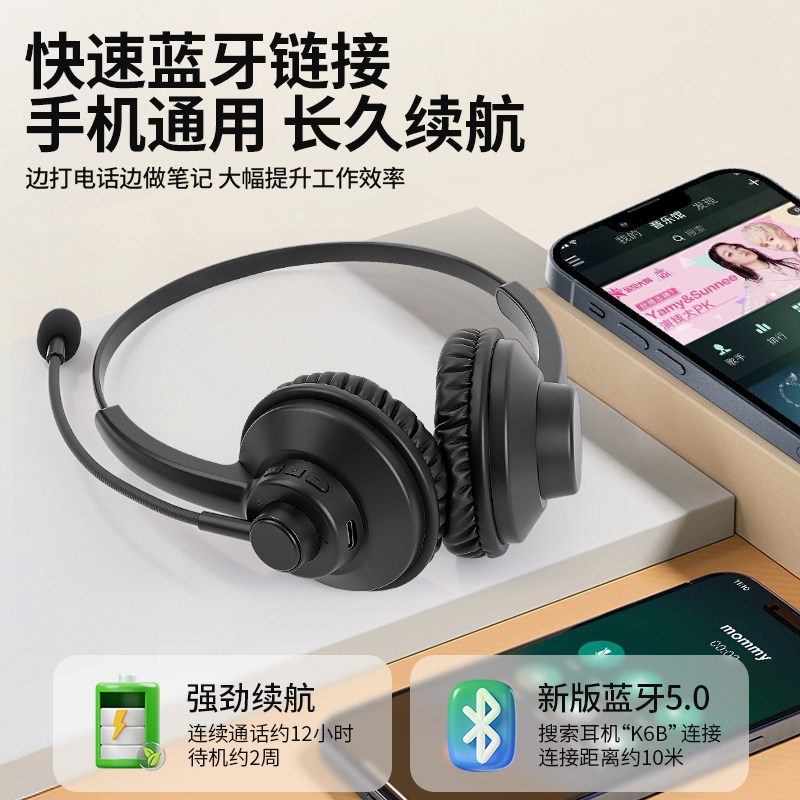 头戴式无线蓝牙话务耳机话务员客服专用耳麦单耳双耳降噪办公专用
