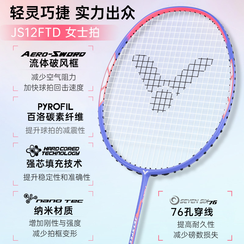 正品victor胜利羽毛球拍女士极速12F简版JS12TD全碳素单拍速度型