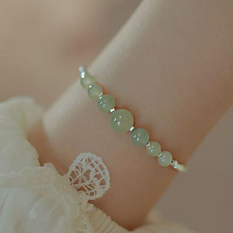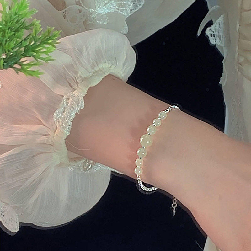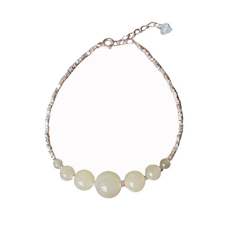 【幂琳】新中式S925纯银碎银子和田玉手链简约百搭国风小众设计拼