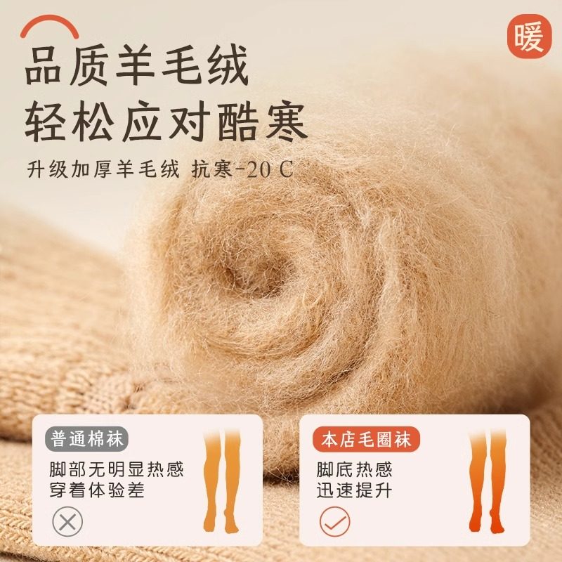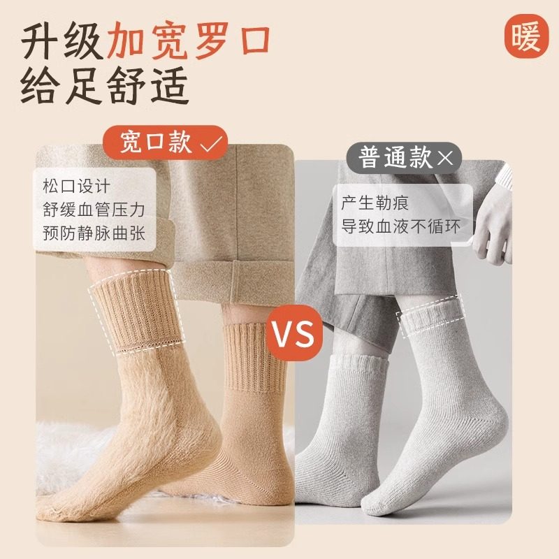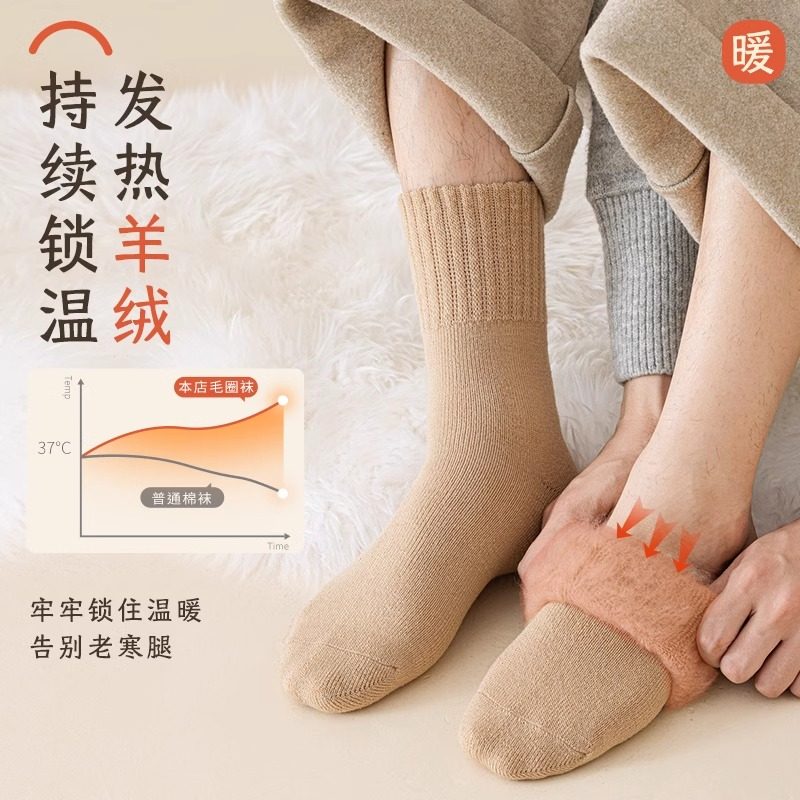 羊绒袜子男秋冬款中筒袜加绒加厚羊毛长筒袜睡眠保暖冬季地板长袜