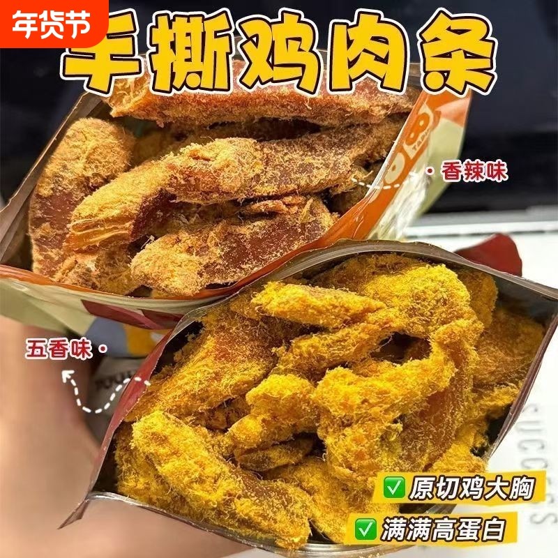 手撕鸡肉条开袋即食鸡肉干解馋夜宵休闲食品零食小吃鸡肉沙嗲健身