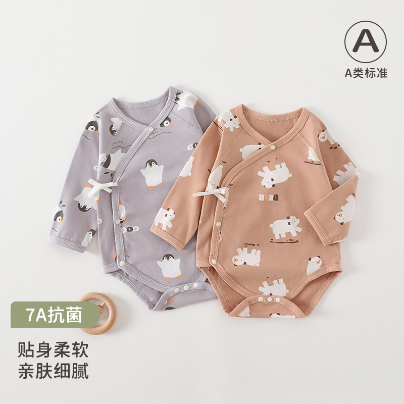 婧麒婴儿包屁衣春秋纯棉长袖哈衣新生衣服男女宝宝爬服偏开连体衣
