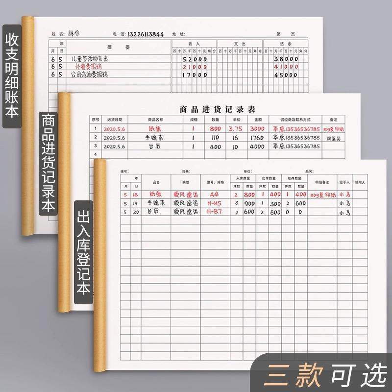 仓库出入库登记记录本记账本商品进出货记账食品进货台账本表实物出入库帐服装店库存盘点表明细分类账本定制
