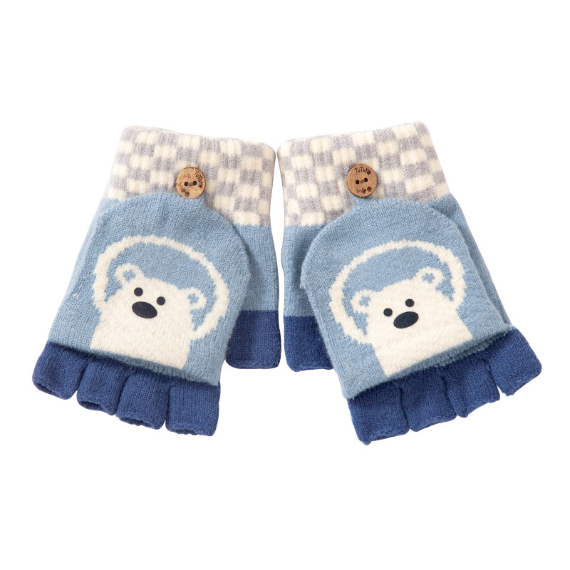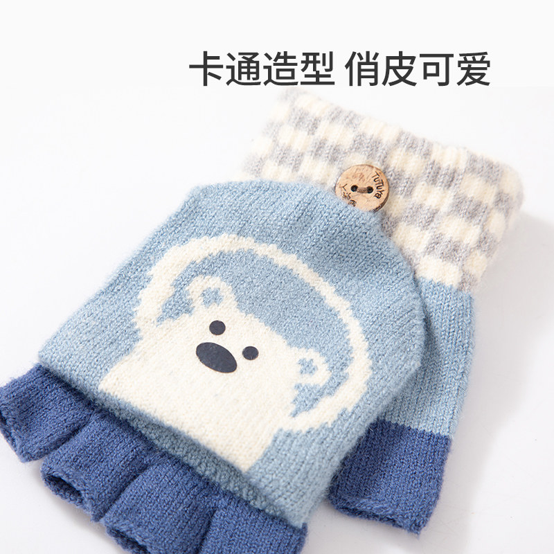 宝宝手套秋冬儿童冬天翻盖半指加厚卡通可爱男童保暖男孩写字针织