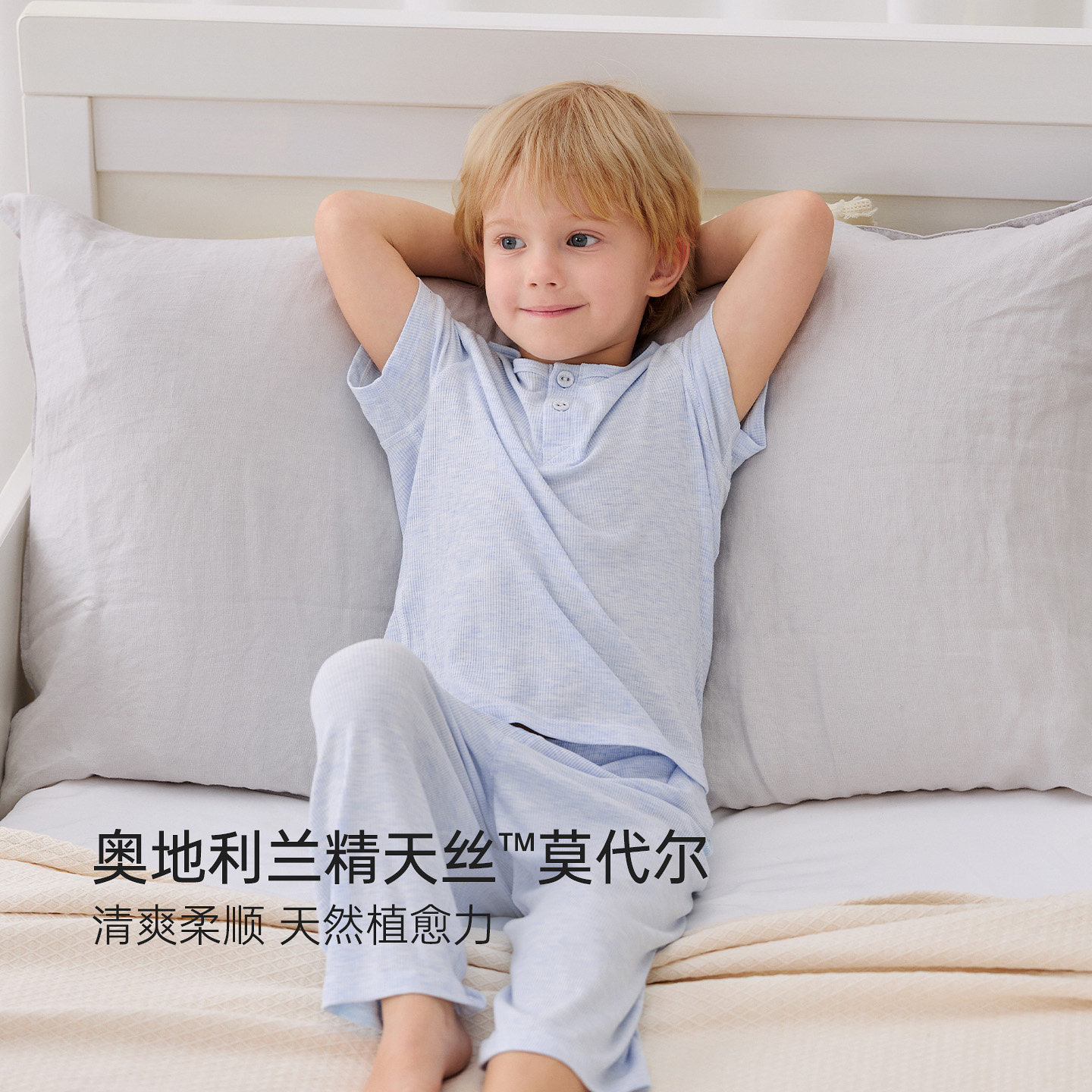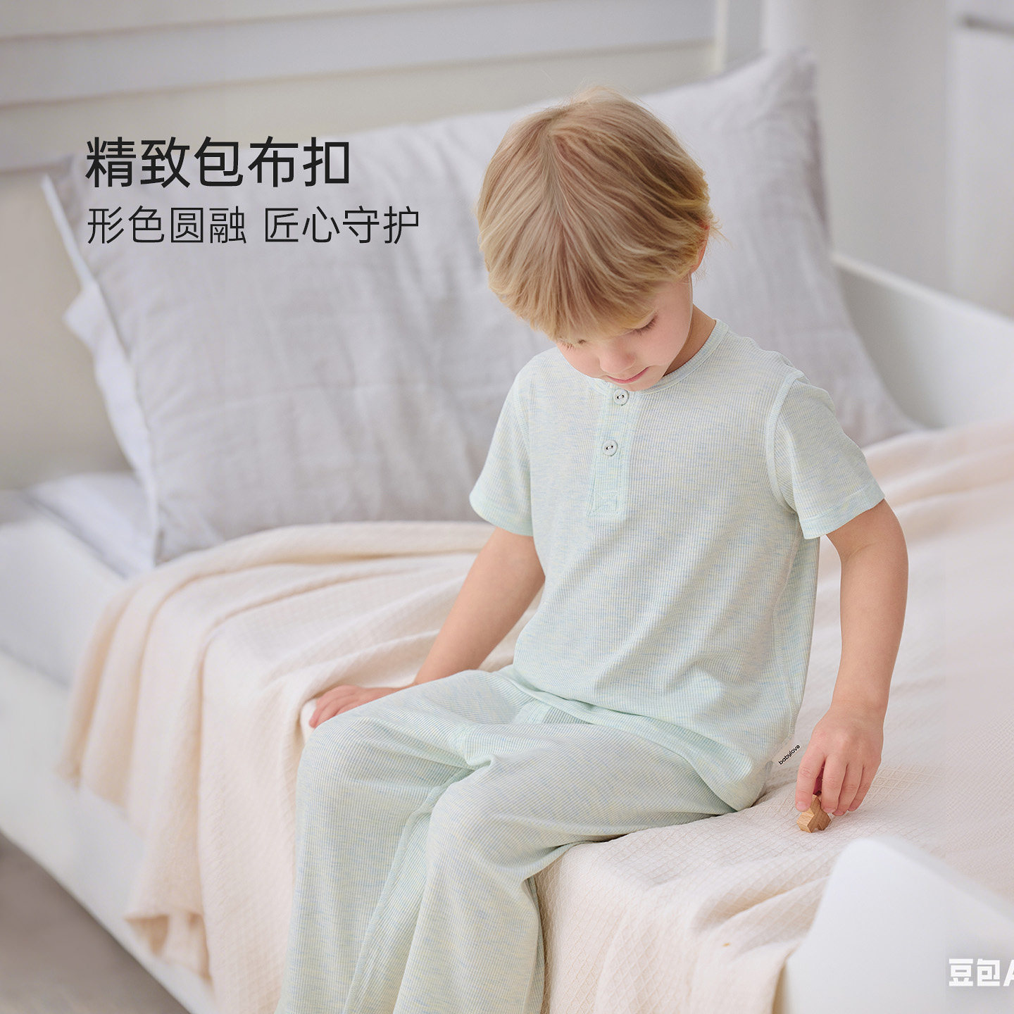 babylove宝宝家居服夏季薄款莫代尔分体套装男女童休闲清凉空调服