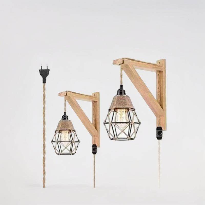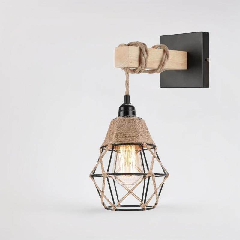 插入式壁灯美式乡村风格实木麻绳壁灯工业风麻绳壁灯跨境电商壁灯