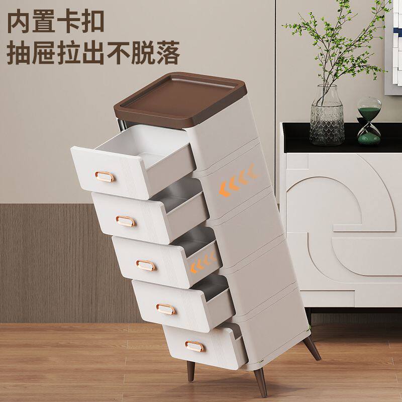 抽屉式收纳柜多层塑料家用杂物整理储物柜可移动床头柜带轮简约