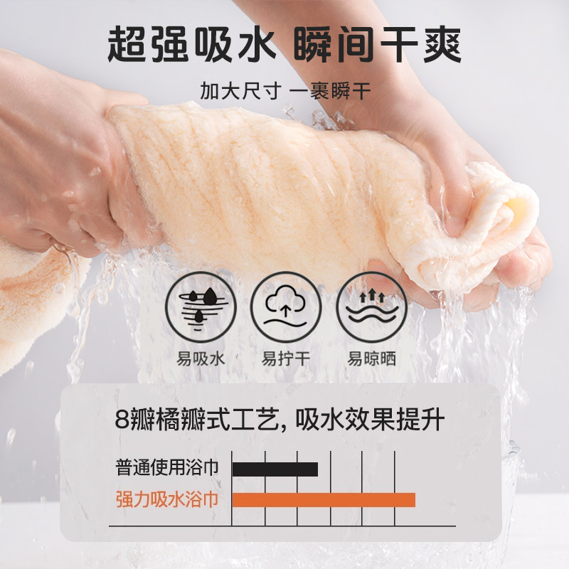 7A抗菌泡泡绒浴巾吸水速干加大可裹洗浴巾不掉毛大尺寸干发超大