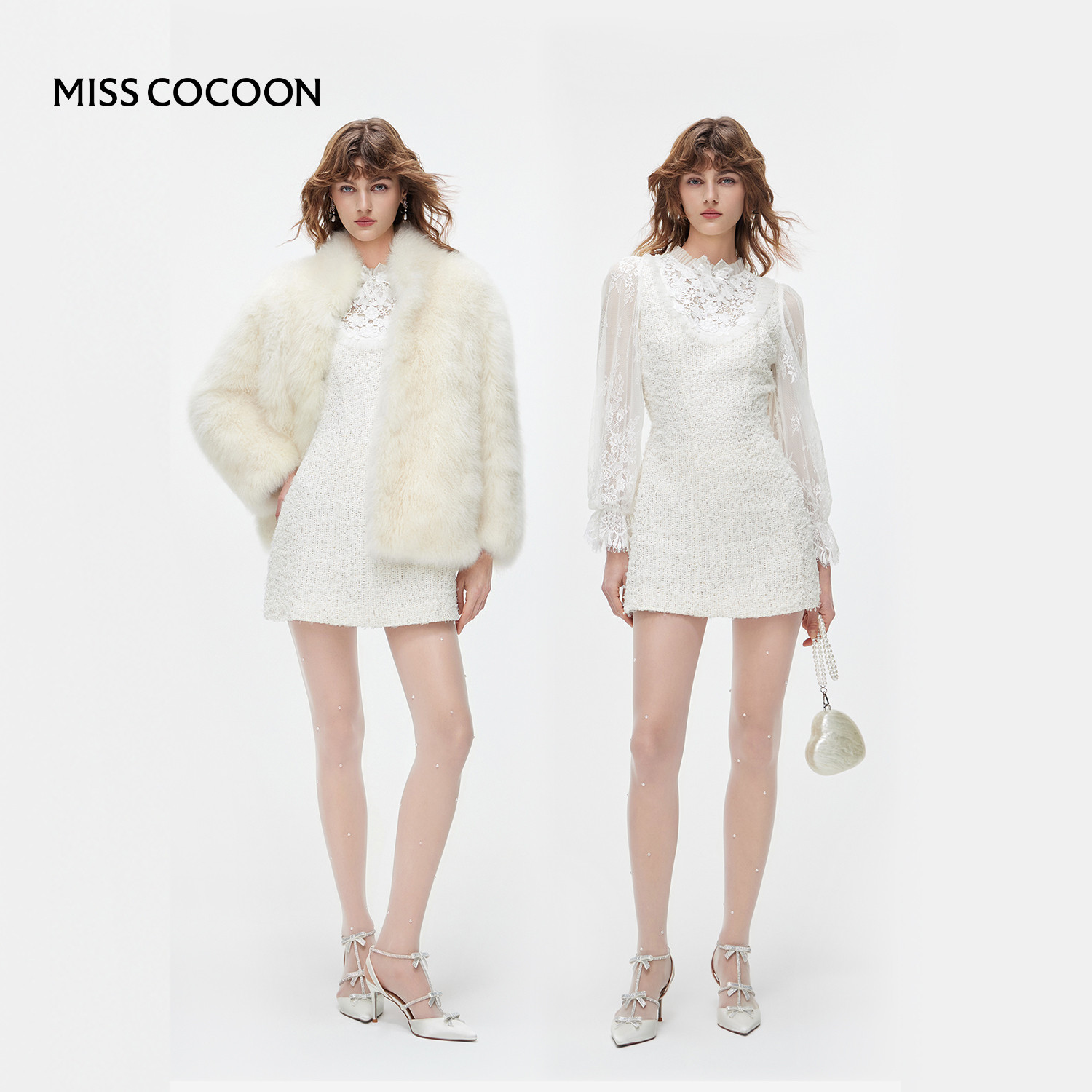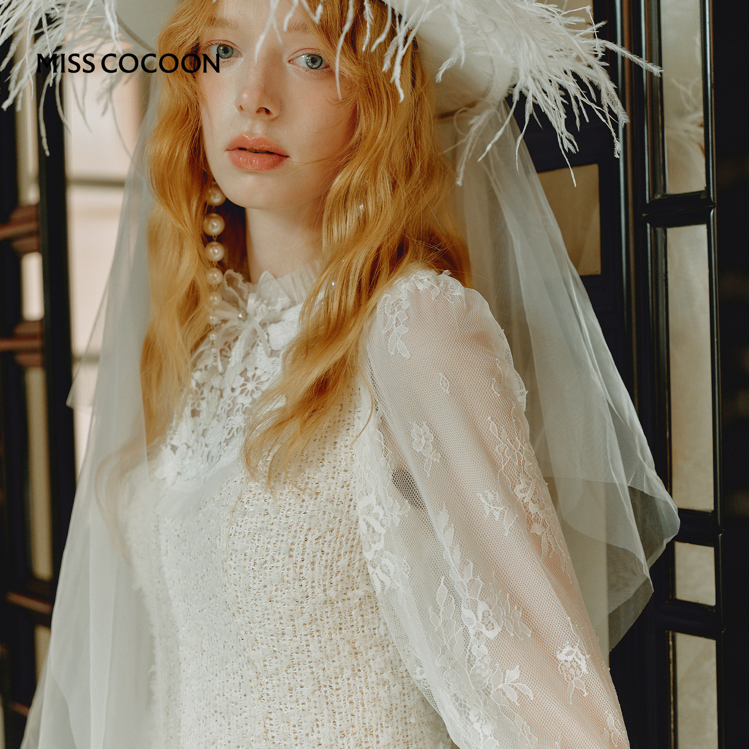 MISSCOCOON可可尼蕾丝网纱裙子女2026春季新款千金风棉质连衣裙