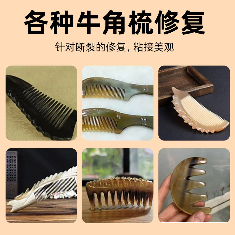 艾高牛角梳修复专用胶粘合牛角骨头牛角断齿扣裂缝牙骨角文玩骨质梳摔断修补多功能粘得牢强力快干粘合剂胶水
