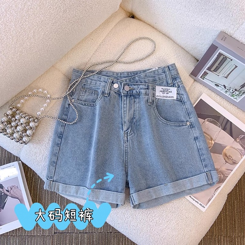 破洞牛仔短裤女夏薄款胖妹妹mm遮胯显瘦阔腿五分中裤梨型身材裤子