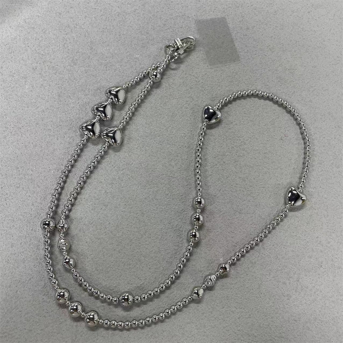 ins冷淡风链条斜挎可背手工串珠背包挂链爱心包包防丢挂绳链