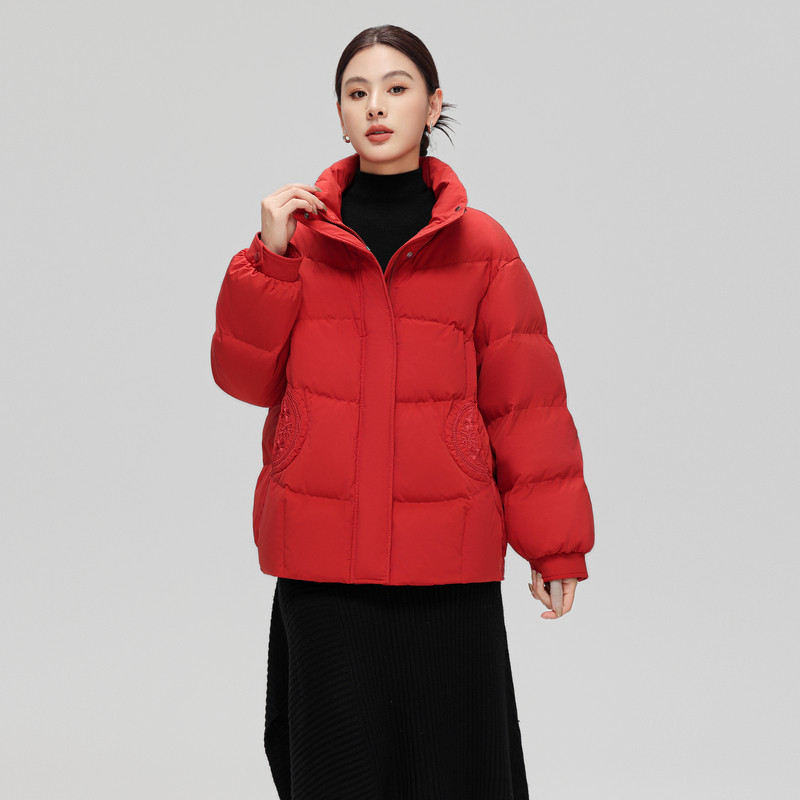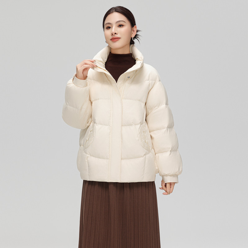 雪中飞2025冬新款妈妈女士短款羽绒服立领新中式国风廓形精致气质