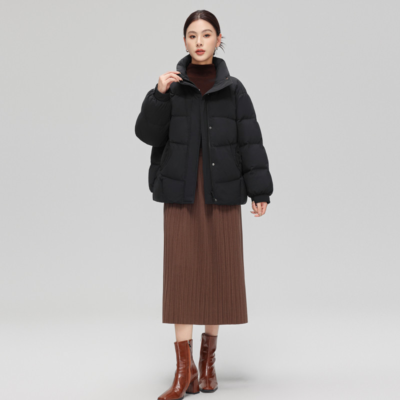 【鞠婧祎同款】鸭鸭2025年冬新款百搭短款女士纯色立领羽绒服外套