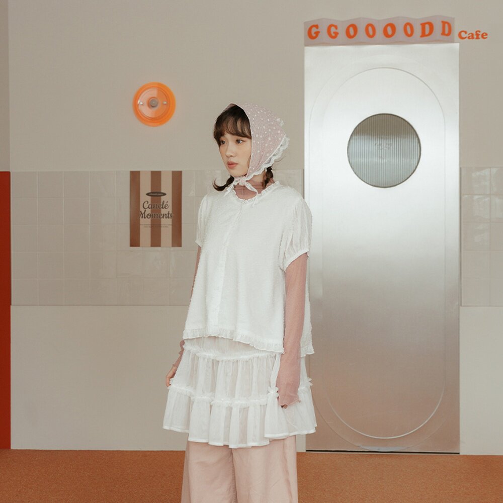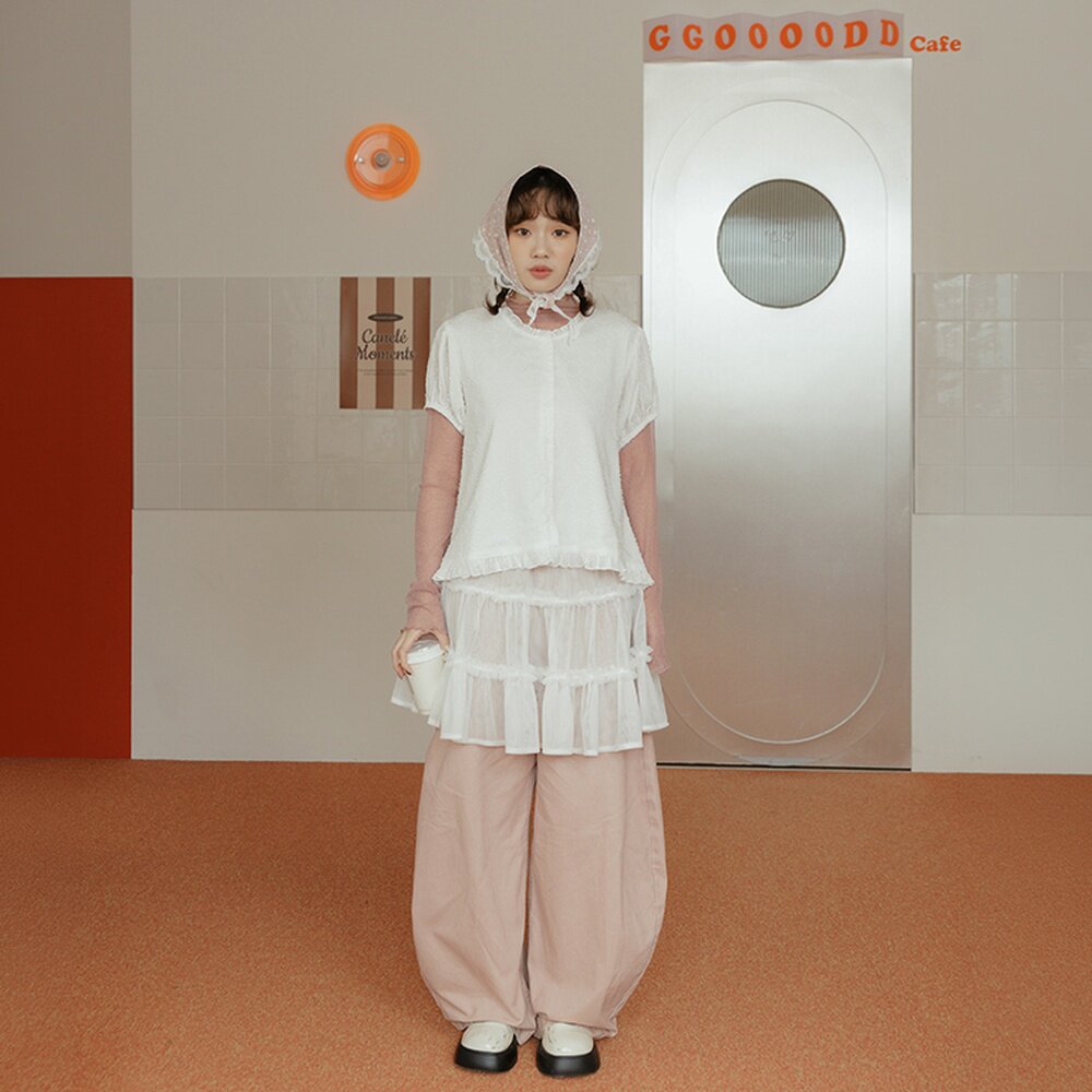 QUEENSHOP 2026春夏新品女装荷叶花边澎袖造型上衣01099640