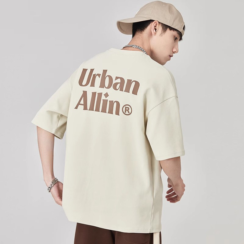 ALLIN 重磅短袖t恤男夏季宽松字母印花体恤休闲美式潮牌潮流上衣