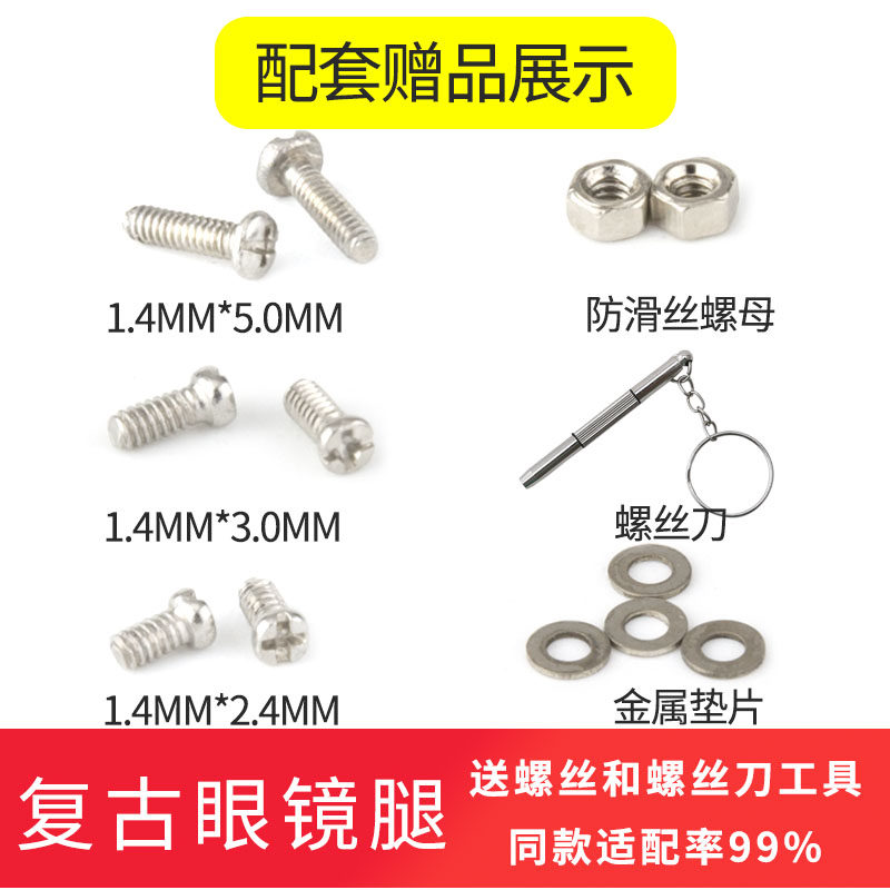 眼镜腿配件一对通用金属异形牙眼镜脚眼镜框架腿脚更换眼睛腿修复